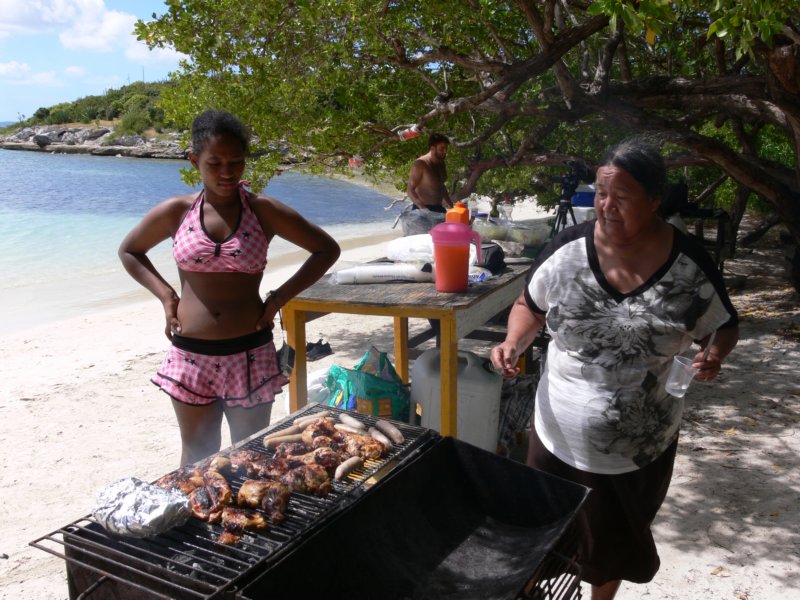 A lot of chicken and sausage ! Lescia and Bernadette